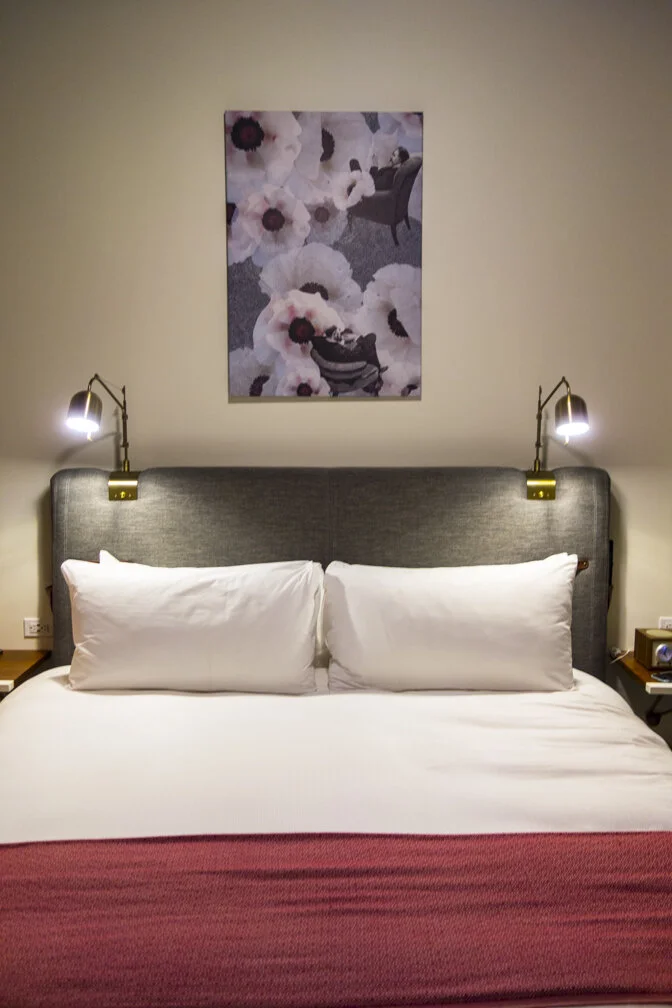 This place has a very cool hipster design favoring a masculine industrial vibe with plenty of exposed brick and duct work. The hotel doubles as an art gallery for the local art school and the lobby features an excellent coffee & pastry bar. To the left of the lobby is Compére Lapin, Top Chef Nina Compton’s restaurant, which unfortunately, we didn’t get to try. The location is nice and central in the Warehouse District: 3 blocks from the French Quarter and a slightly longer, but scenic, walk to the Garden District. The front desk staff were all excellent. Our first floor room had some funky vintage mod furniture and a very comfy bed, but was really dark with no natural light (the only window looked out onto a dark ventilation shaft). Apparently the higher level rooms have windows with much more light, so if we went back, we’d request a room on a higher floor. Parking isn’t cheap at $40/day, but you really don’t need a car with such a central location.