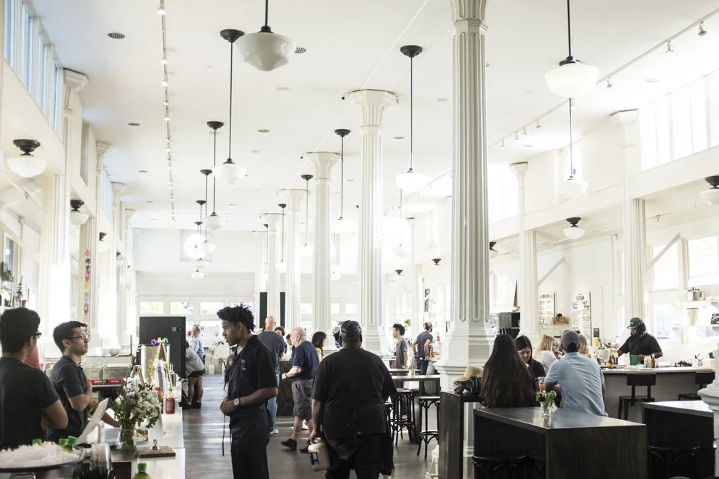 A beautiful airy space with about 15-20 vendors offering a diverse range of food options and a cocktail bar. It’s like a mini upscale version of Reading Terminal Market.