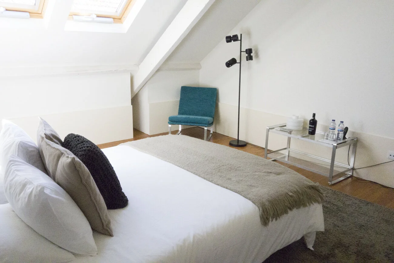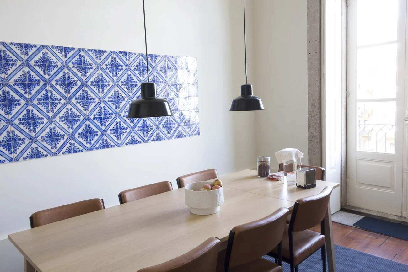 This guesthouse is chic and very affordable, with a mix of standard rooms and hostel style, located right in the center of Porto on the best known pedestrian shopping street. With only 6 rooms it creates a cosmopolitan atmosphere, cozy and relaxed, allowing contact with the local culture in a more intimate way. It’s housed in a building from the early twentieth century, carefully restored preserving the original features while updated with today’s standards of comfort. There’s a minimalist clean palette aesthetic sense, with hardwood floors, granite walls, pops of Portuguese tile, and vintage mid-century modern furniture.